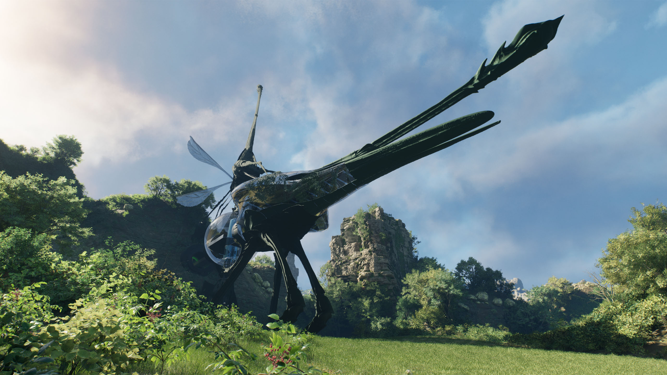 Hidden within the cliffs beyond the island lies a mysterious new world — the Spider Nest. A vast cavern carved into the mountain’s heart, its entrance is watched over by a colossal dragonfly, wings shimmering like stained glass in the sunlight.